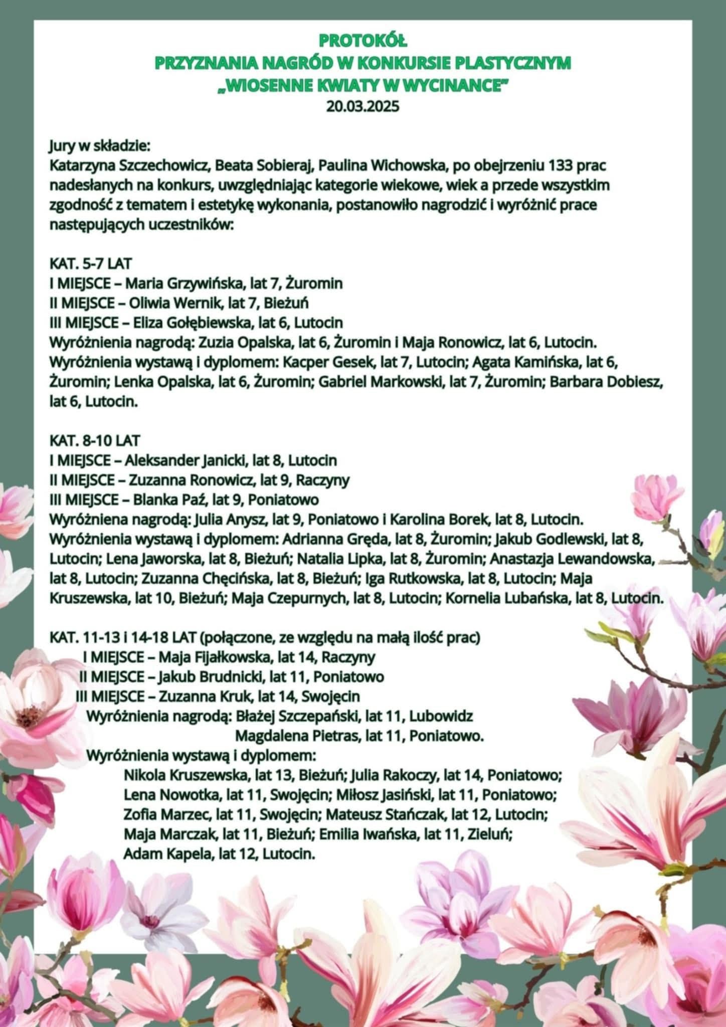 Z ogromną radością gratulujemy Wam wyróżnień oraz nagród w Konkursie "Wiosenne Kwiaty w wycinance".