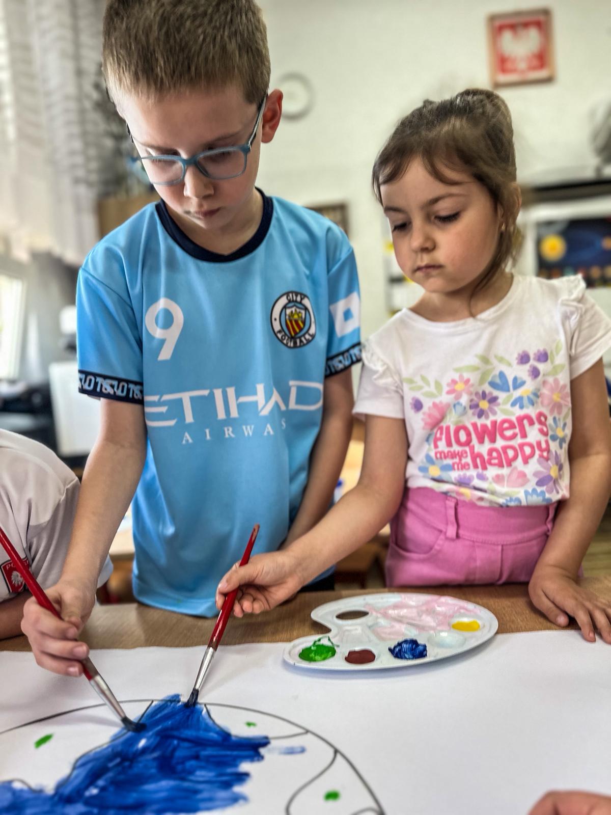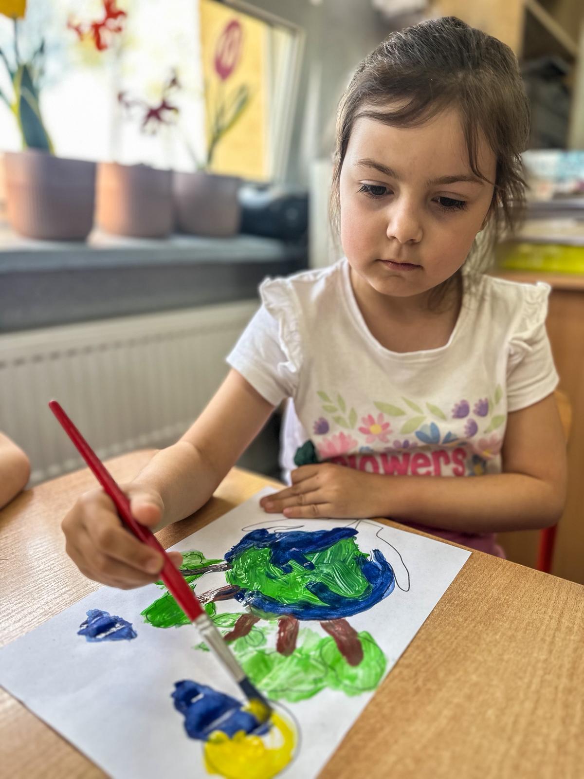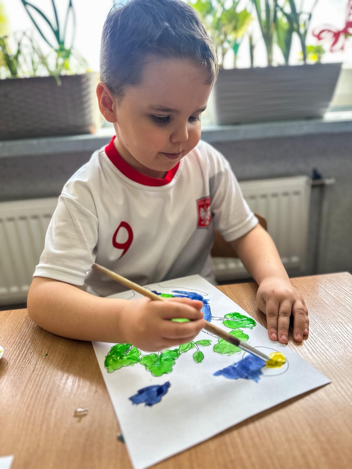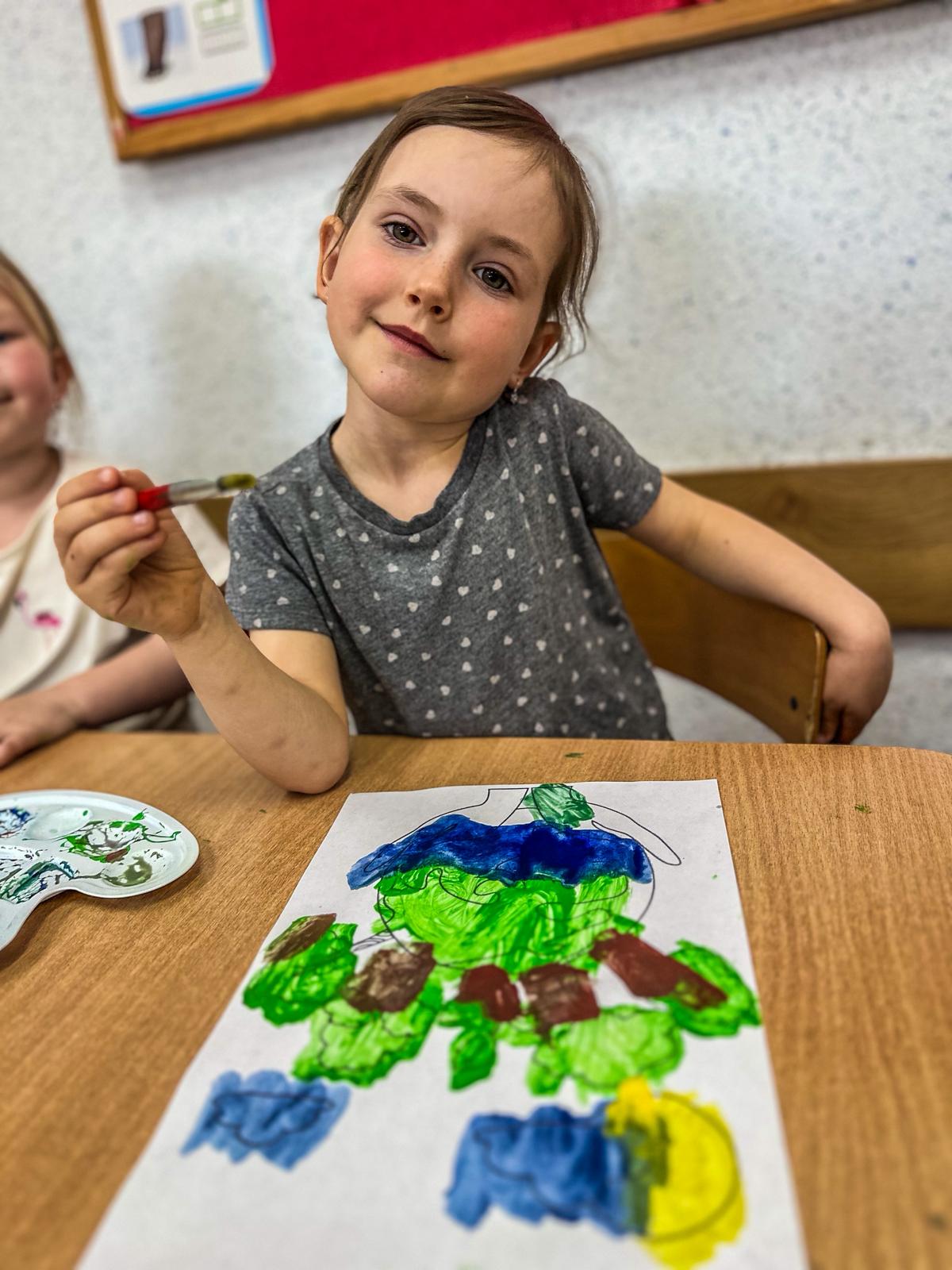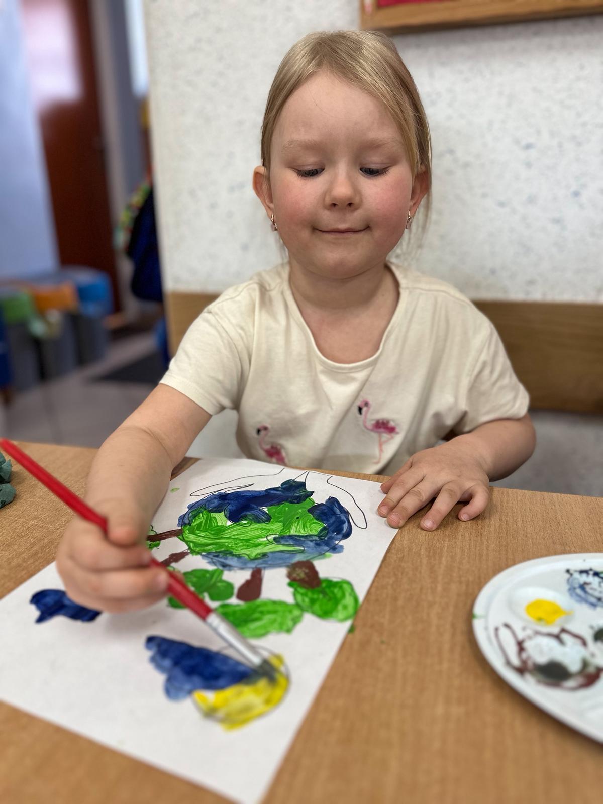 Następnie dzieci malowały farbami, tworząc piękne prace inspirowane naturą