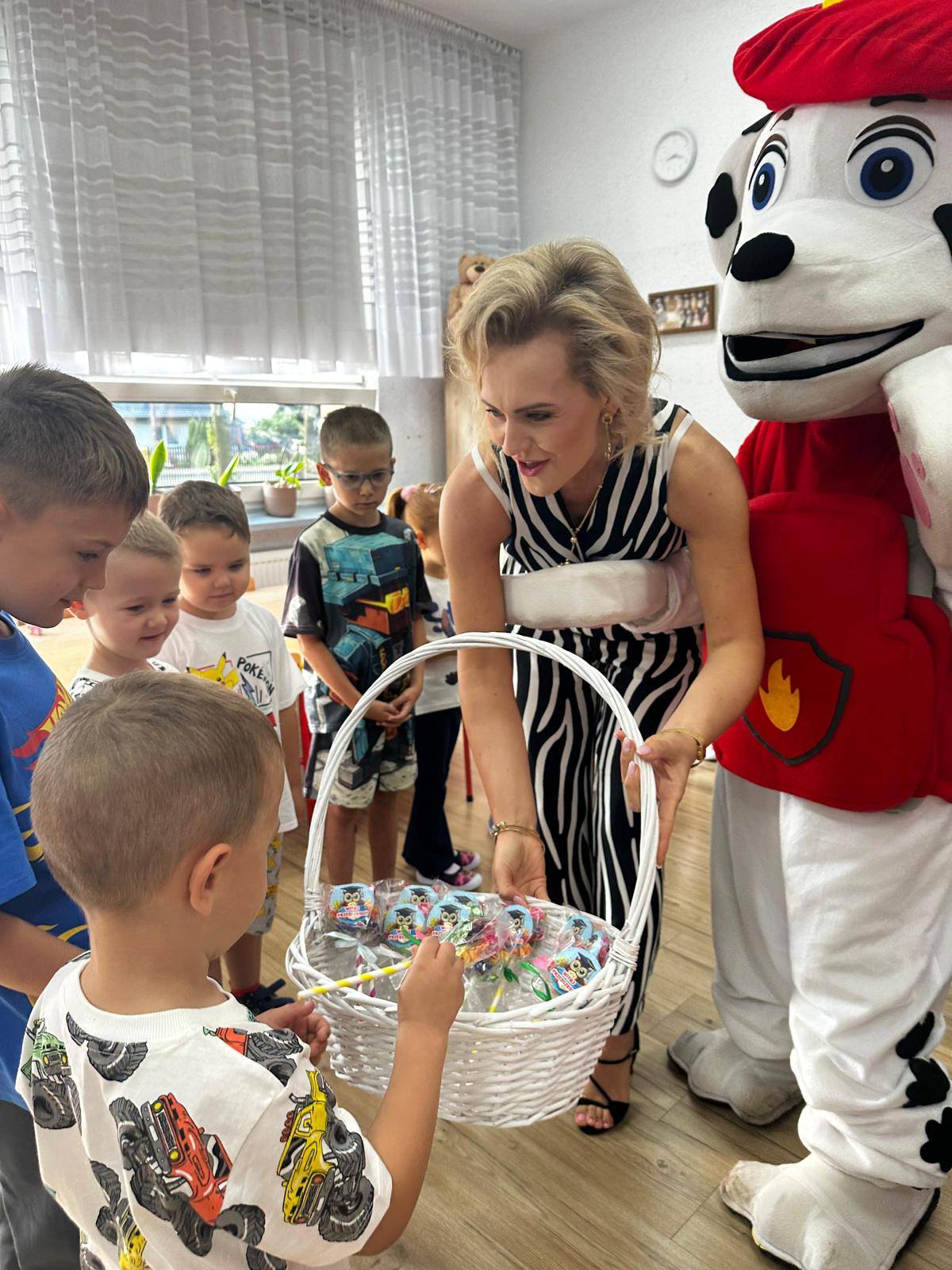 Dzieci wzięły udział w grach zespołowych i zabawach integracyjnych, a dzięki wizycie maskotki z Psiego Patrola i słodkościom uśmiech z twarzy naszych Milusińskich nie znikał przez cały dzień 🫶