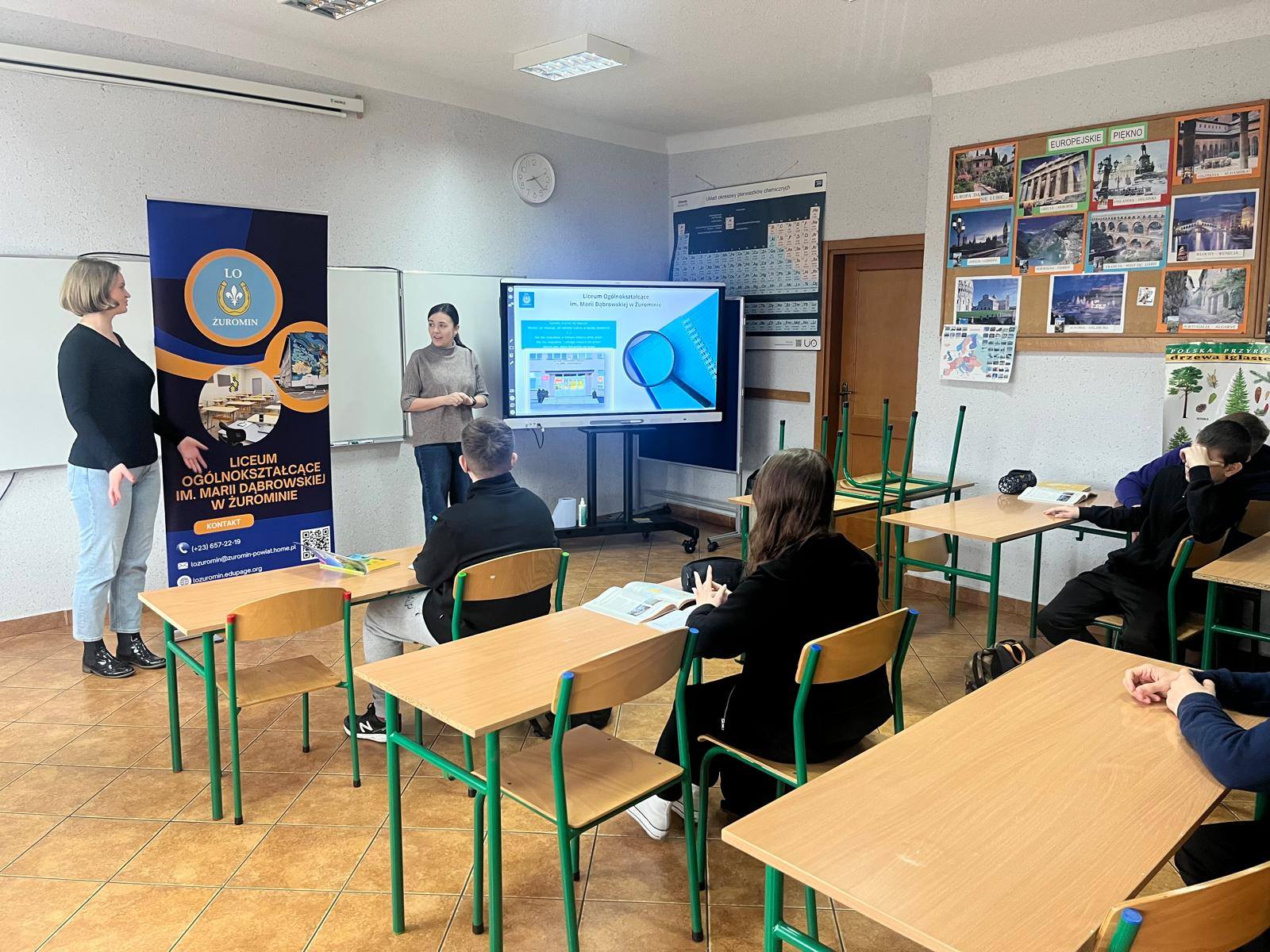 W ramach dorocznych spotkań, które pomagają uczniom w doborze ścieżki edukacyjnej i zawodowej odbyło się dziś w naszej szkole spotkanie z dyrektor I Liceum Ogólnokształcącego im. Marii Dąbrowskiej w Żurominie - panią Edytą Gołąbiewską oraz psychologiem szkolnym - panią Patrycją Budzich.