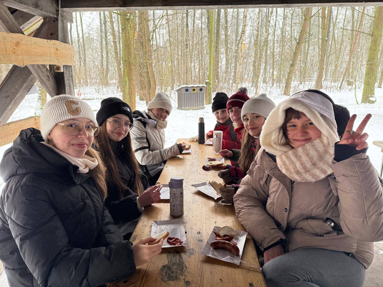 Następnie przeszliśmy do zwiedzania skansenu z przewodnikiem, a ostatnią częścią programu bylo ognisko, pieczenie kiełbasek oraz wspólne zabawy na śniegu. Wyjazd dostarczył wielu uśmiechów i niezapomnianych wrażeń. Bilety wstępu do skansenu zostały pokryte w ramach programu „Kulturalna szkoła na Mazowszu”