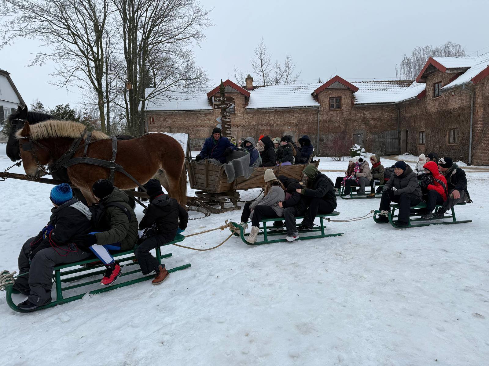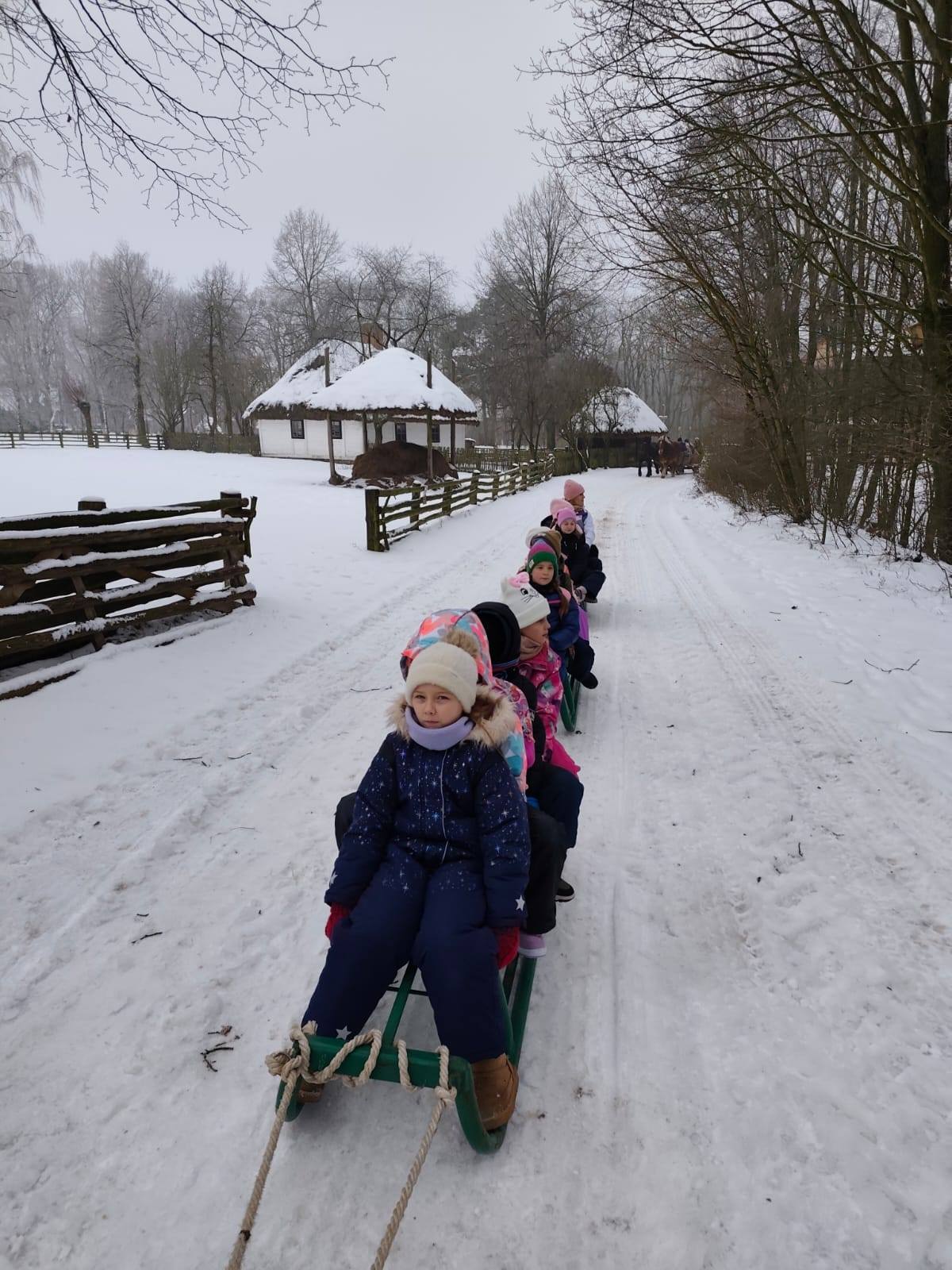 Na zakończenie pierwszego semestru nasi uczniowie udali się na wycieczkę do Sierpca, którą rozpoczęliśmy od kuligu. Dzieci z radością jechały saniami przez malowniczo ośnieżoną okolicę, podziwiając zimowy krajobraz.