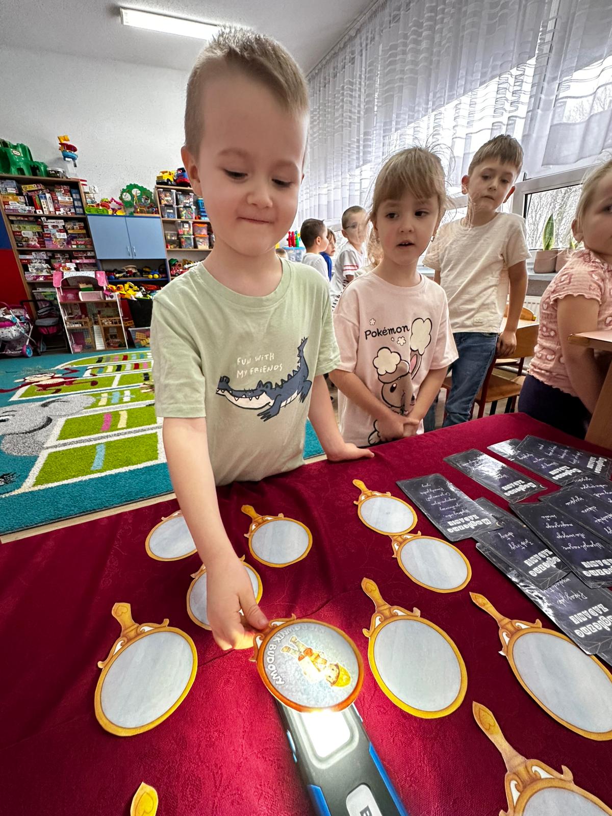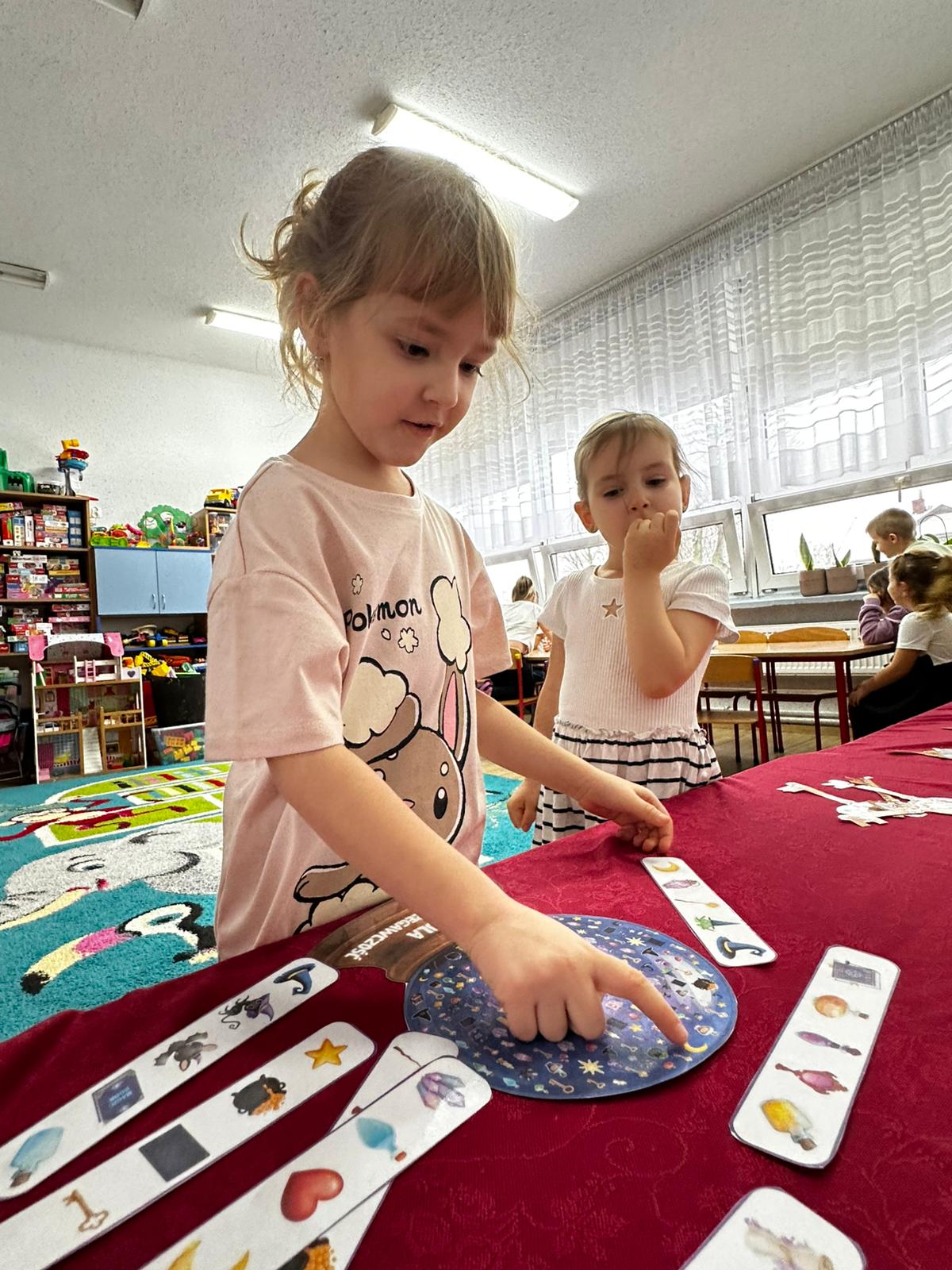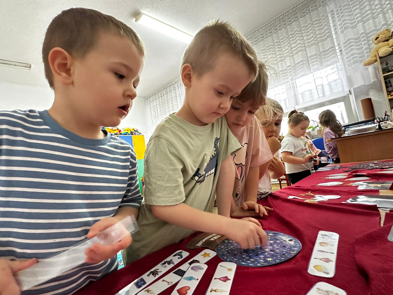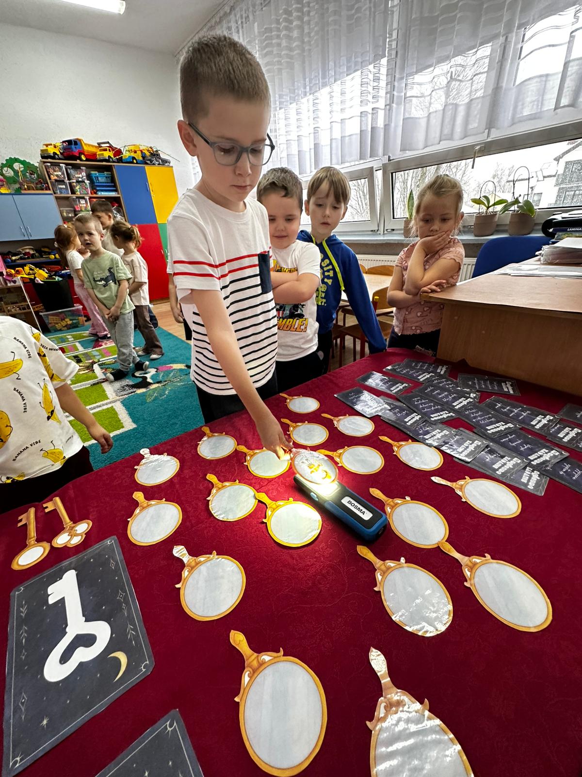 Dzieci wróżyły przyszłe zawody, zaglądając do magicznego lusterka, a następnie wykonywały zadania z tajemniczych kart, które prowadziły je przez kolejne etapy zabawy. Nie zabrakło również dopasowywania kluczy do właściwych drzwi, co wzbudziło wiele emocji i śmiechu. Był to dzień pełen radości, ciekawości i wspólnej zabawy. Dziękujemy dzieciom za zaangażowanie, a rodzicom za pomoc w przygotowaniu słodkiego poczęstunku!