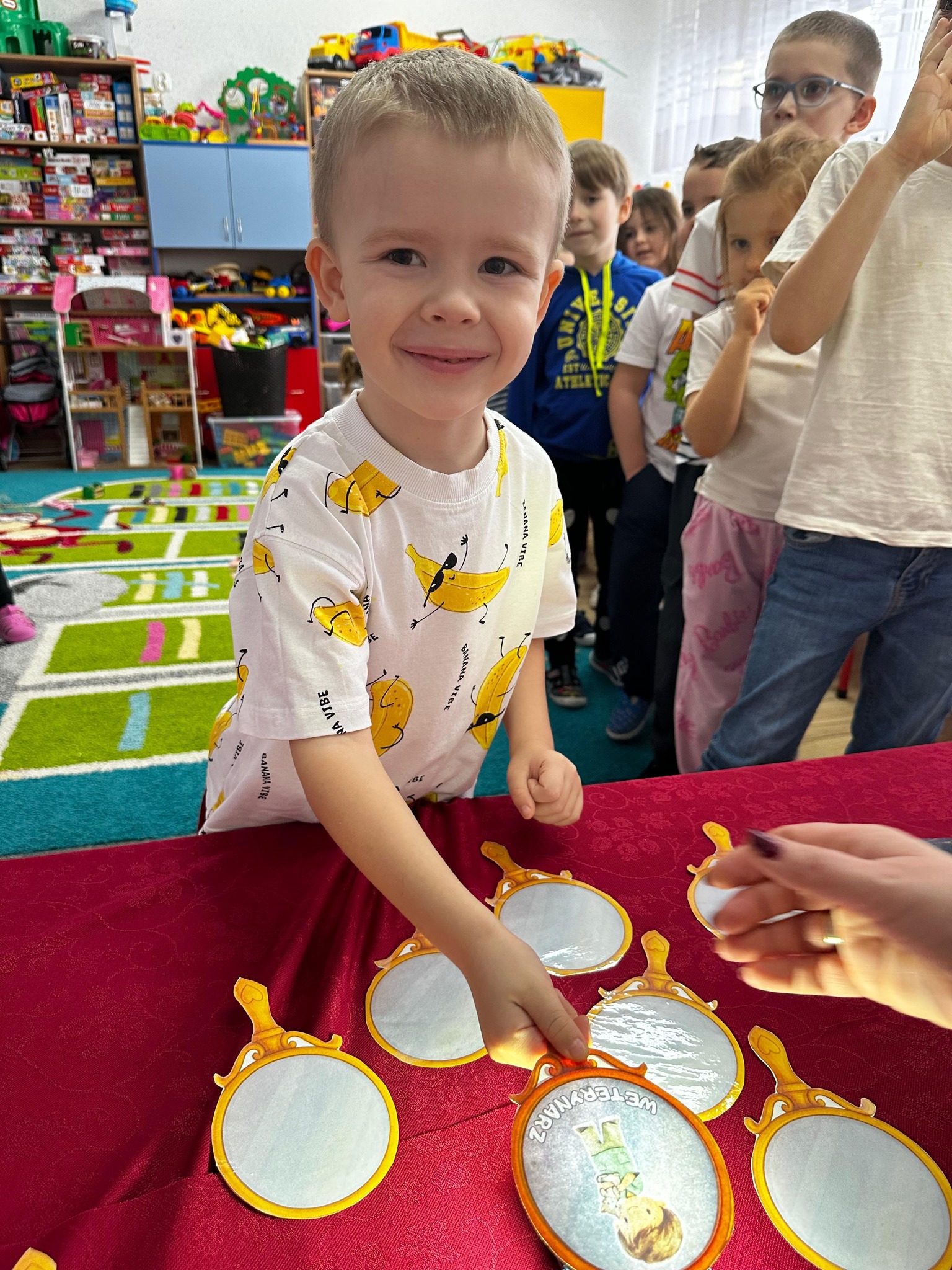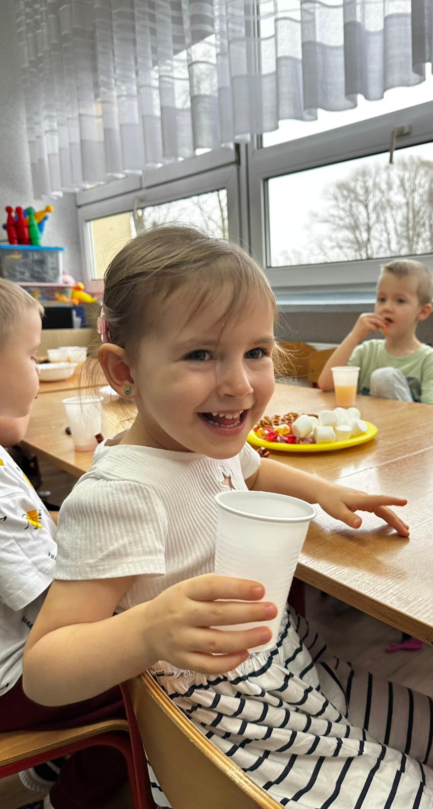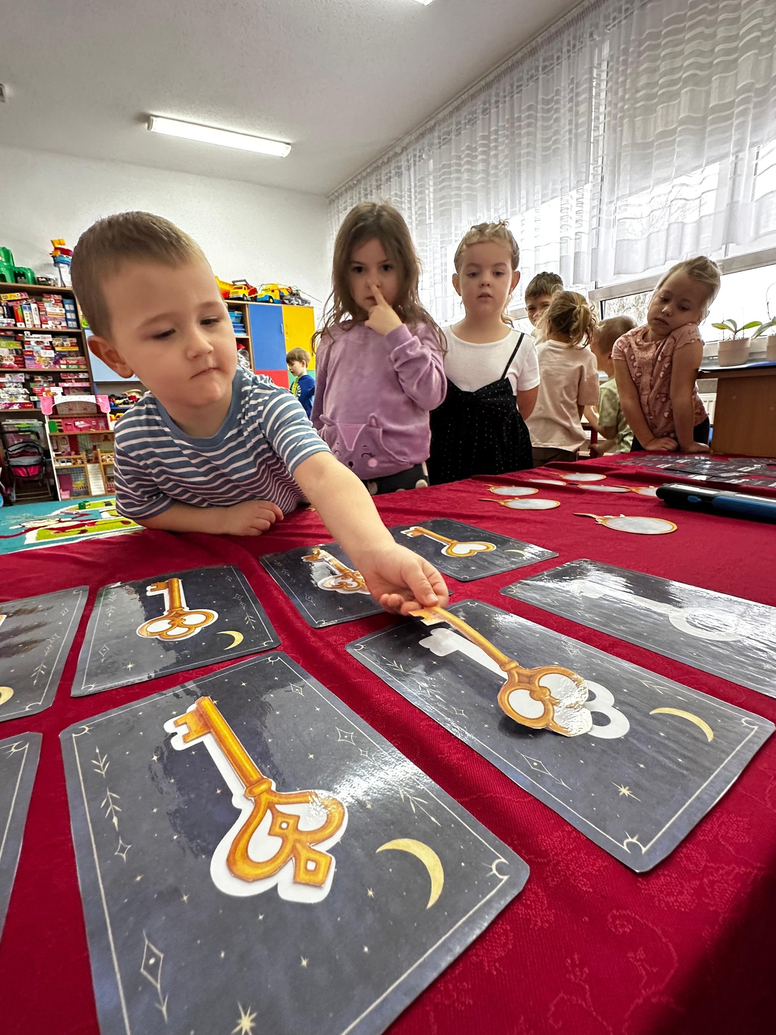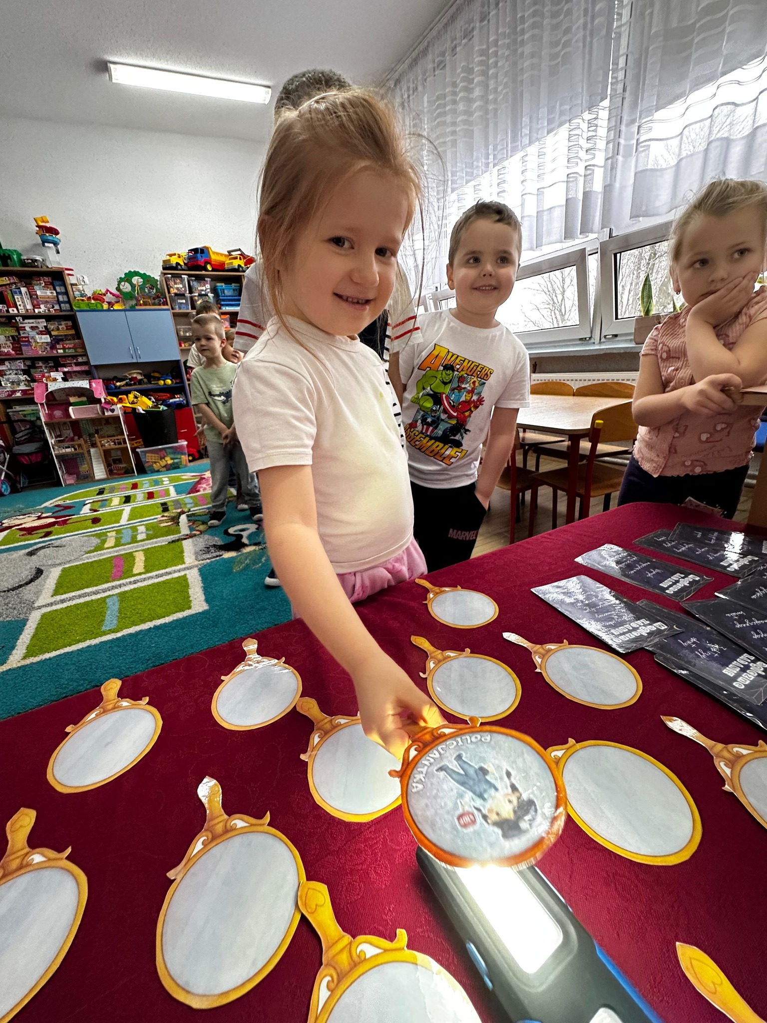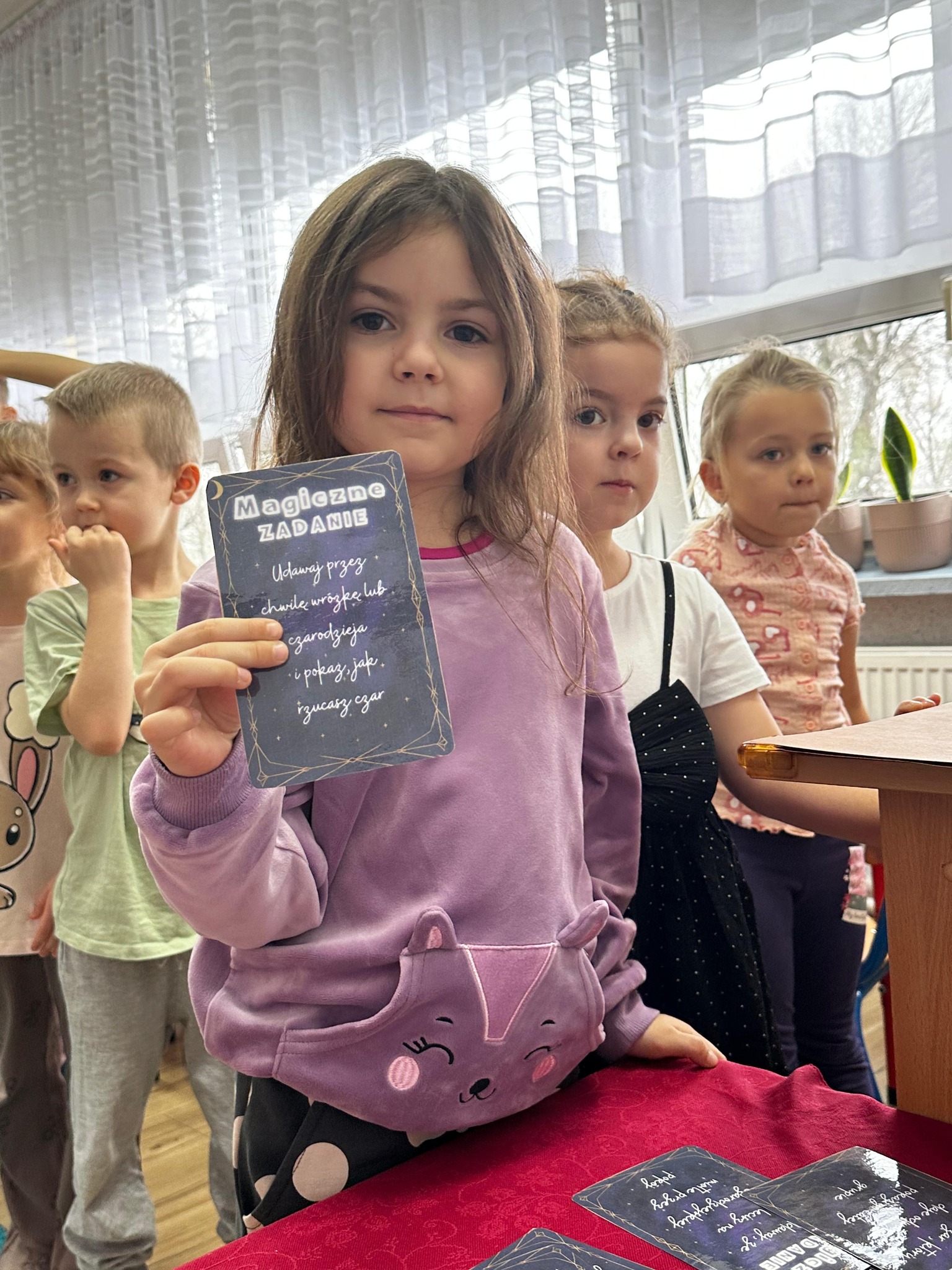 Dzieci wróżyły przyszłe zawody, zaglądając do magicznego lusterka, a następnie wykonywały zadania z tajemniczych kart, które prowadziły je przez kolejne etapy zabawy. Nie zabrakło również dopasowywania kluczy do właściwych drzwi, co wzbudziło wiele emocji i śmiechu. Był to dzień pełen radości, ciekawości i wspólnej zabawy. Dziękujemy dzieciom za zaangażowanie, a rodzicom za pomoc w przygotowaniu słodkiego poczęstunku!